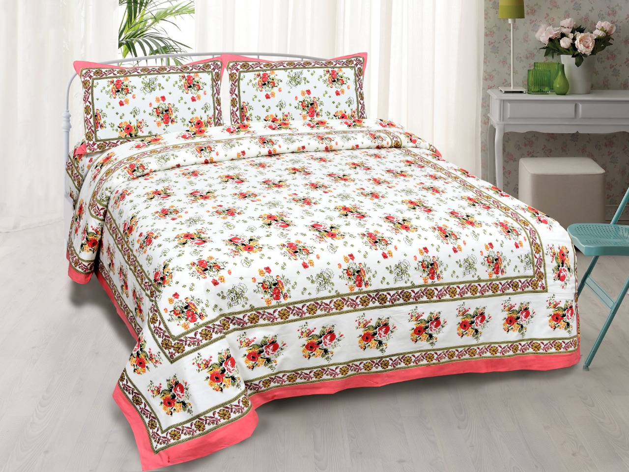 Bedsheet floral print. 3 different color